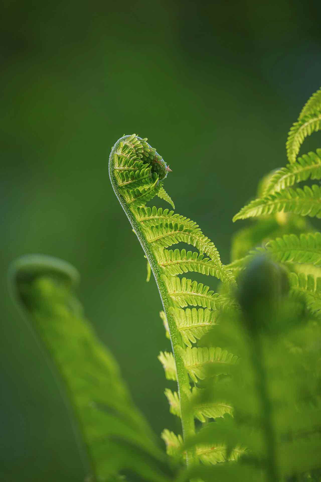 - 어린 고사리 순은 부드럽고 살짝 말린 듯한 질감을 가지고 있습니다.